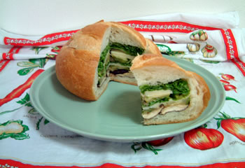Qualche curiosità in più:Questa ricetta è l’ideale per il caldo estivo che toglie spesso l’appetito. Potete usare una pagnotta grande o delle pagnotte più piccole, pane bianco o integrale, a seconda dei vostri gusti. Il formaggio ideale è il taleggio o il fontina, ma se non li trovate, provate con altri formaggi come emmenthal, asiago o gouda. Non usate la mozzarella perché è troppo acquosa, nè il pecorino o il gorgonzola perché hanno un sapore troppo forte, soprattutto per i bambini. Anche la mozzarella già pronta in buste per la pizza può andare bene in mancanza d’altro:ricordate, però, che la qualità del formaggio èimportante per la buona riuscita della ricetta. Se non avete i funghi champignons, provate con i funghi giapponesi shiitake, ma non tagliateli a fettine, lasciate il cappello intero e togliete solo il gambo. La disposizione degli strati è a piacere, pensate che poi dovrete tagliare il pane a quarti e anche l’occhio vuole la sua parte. Potete servirlo come piatto unico accompagnato da bibite per i bambini o birra per gli adulti. Va bene anche per un picnic o una gita: in questo caso tagliate le porzioni prima di uscire di casa e avvolgetele in pellicola traparente, in modo da poter mangiare senza problemi. Se avete una festa di compleanno è un’idea diversa dal solito per fare una sorpresa ai bambini tagliando il pane davanti a loro e facendogli indovinare che cosa c’è dentro. Se usate delle pagnotte piccole tagliatele a metà invece che a quarti o a spicchi. |